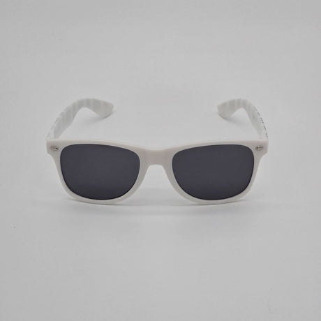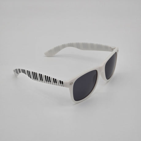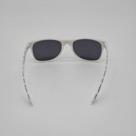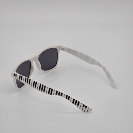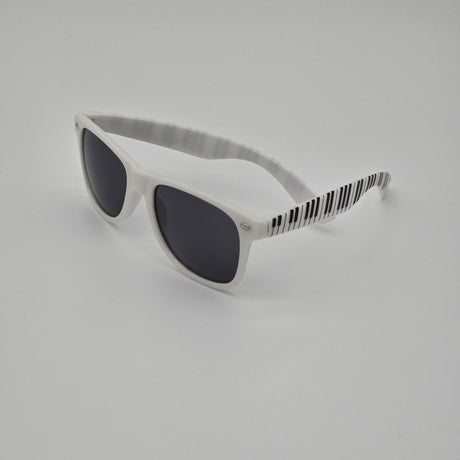 White Retro Sunglasses With Black Piano Key Pattern Arms & Soft Drawstring Pouch