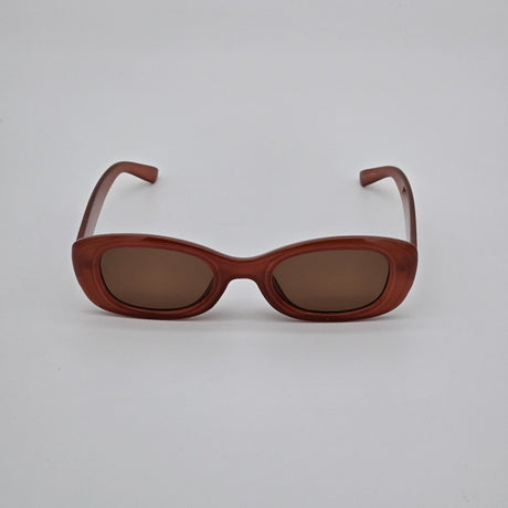 Retro Oval Sunglasses With Brown Tinted Lenses & Rose-Print Pouch