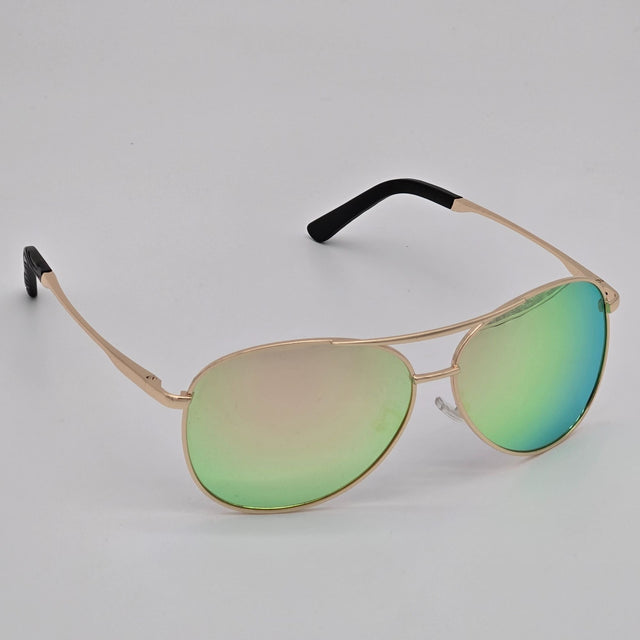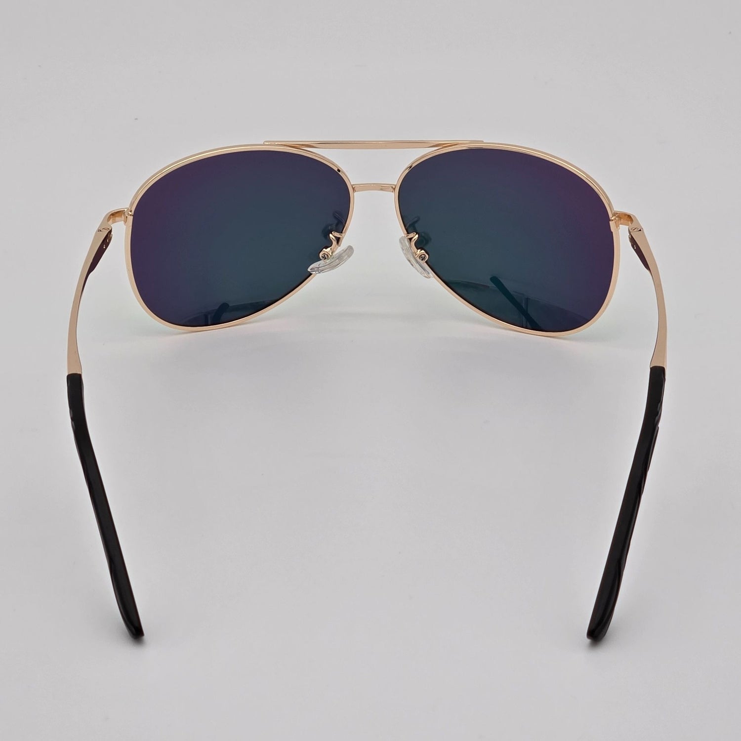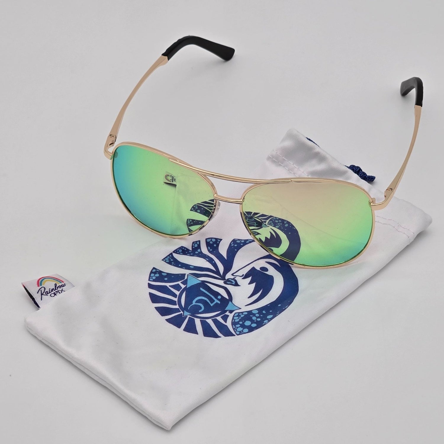 Aviator Sunglasses With Gold Metal Frame & Mirror Lens Unisex Lightweight Design Includes Protective Pouch By Rainbow OPTX
