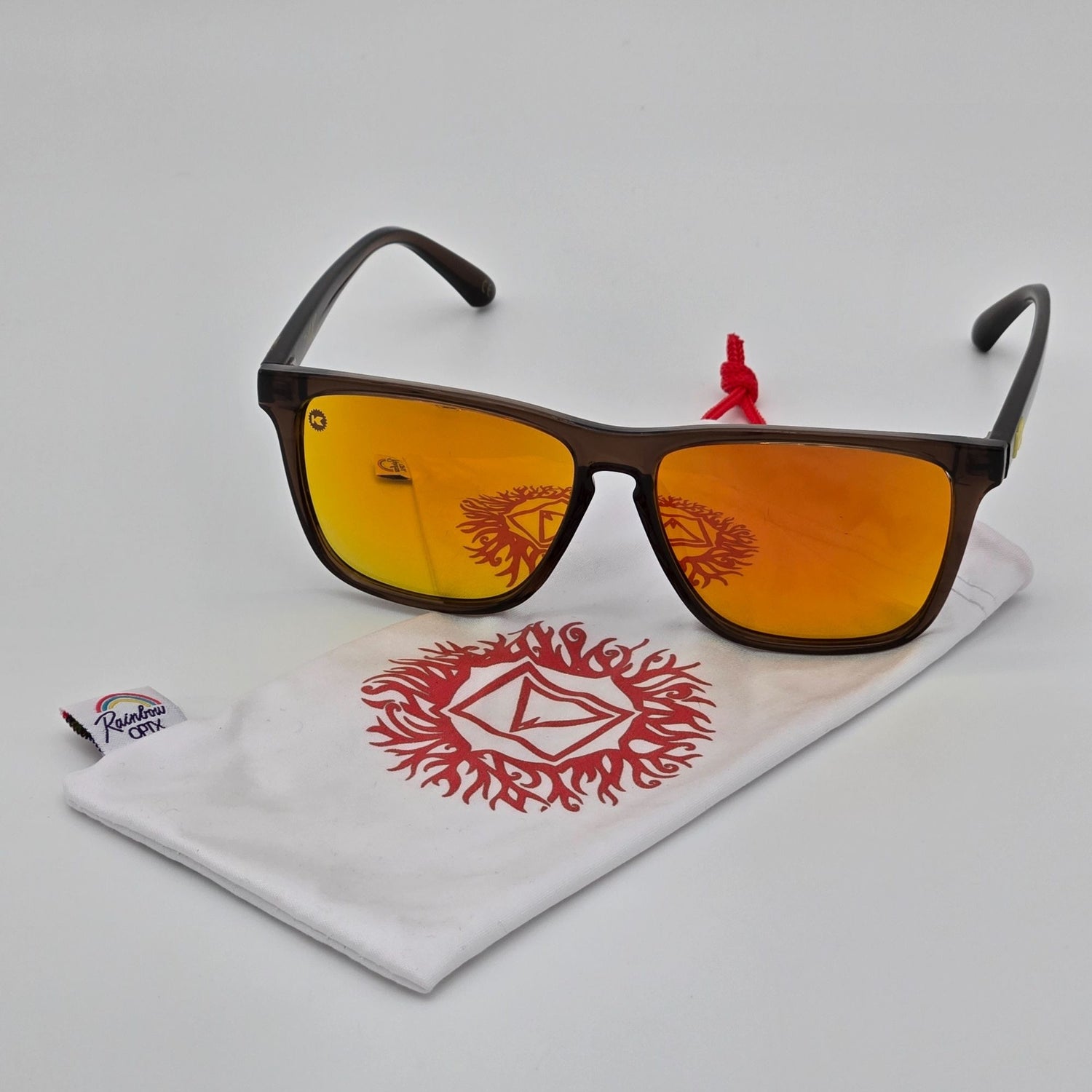 Knockaround Premiums Brown Frame Sunglasses With Yellow Mirrored Lenses + Microfiber Pouch