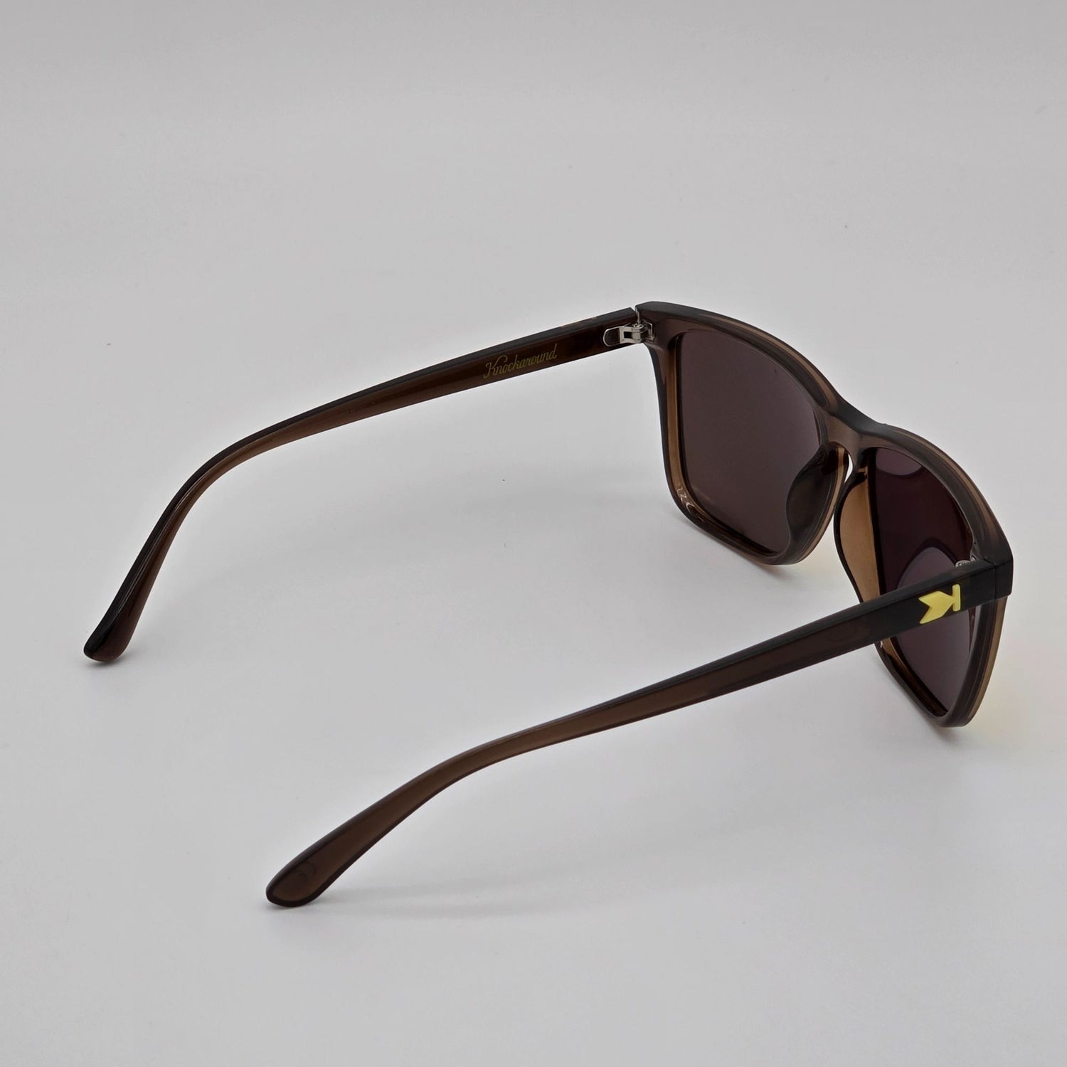 Stylish sunglasses offering UV400 protection with a durable brown frame and vibrant yellow mirrored lenses. Includes branded microfiber pouch for easy storage.