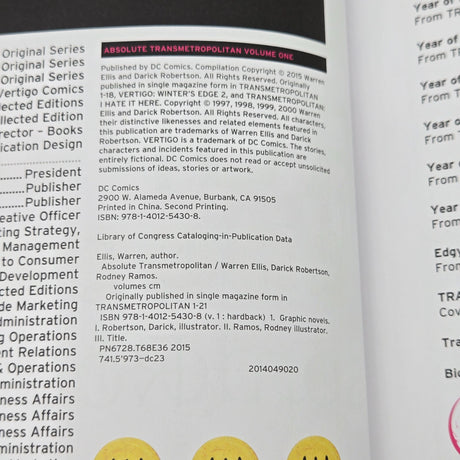 Absolute Transmetropolitan Vol. 1 Hardcover Slipcase Edition By Warren Ellis & Darick Robertson