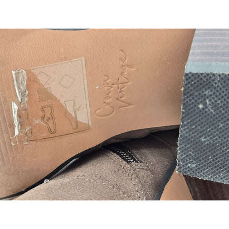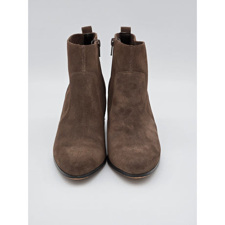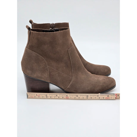 Crown Vintage Saleen Brown Suede Ankle Booties With Block Heel & Side Zipper For Women