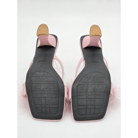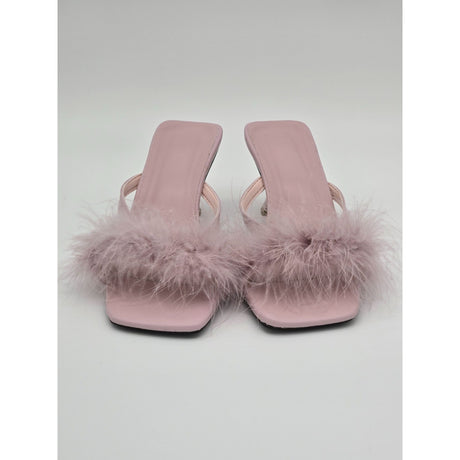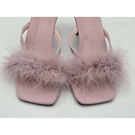 Pink Feathered Heel Sandals With Square Toe & 2-Inch Heels For Women