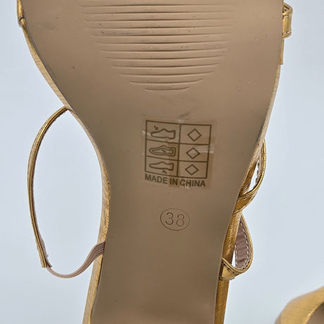 Gold Strappy Pointed-Toe High Heel Sandals Size 7.5 Women's Elegant Evening Shoes