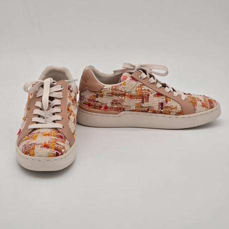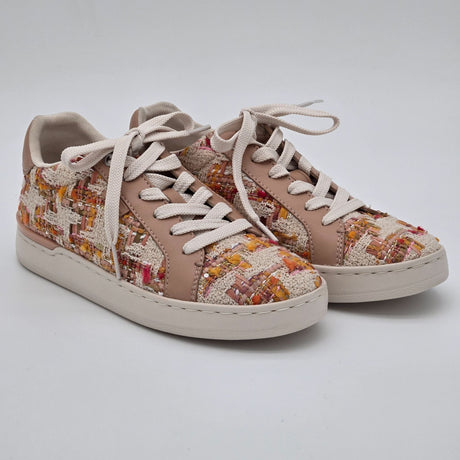 Coach Womens Lace-Up Sneakers Multicolor Tweed & Leather Casual Shoes