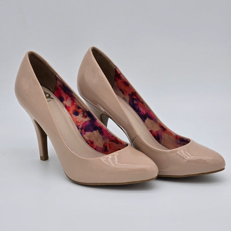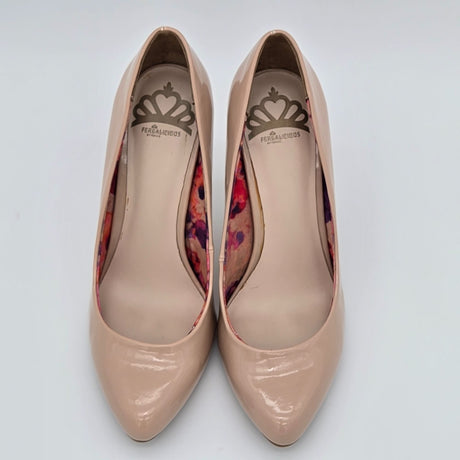 Fergalicious By Fergie Nude Patent Leather High Heels With Floral Print Lining Size 6.5 Womens Shoes