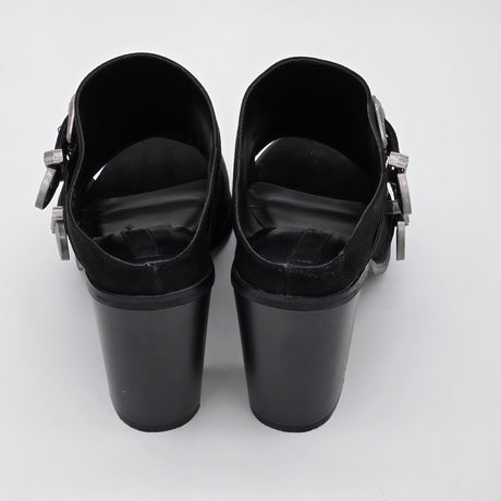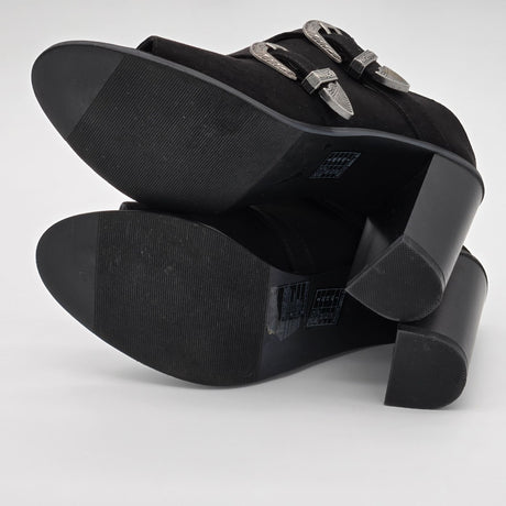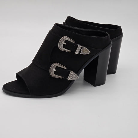 Forever 21 Black Open-Toe Mule Heels With Western Buckle Detail