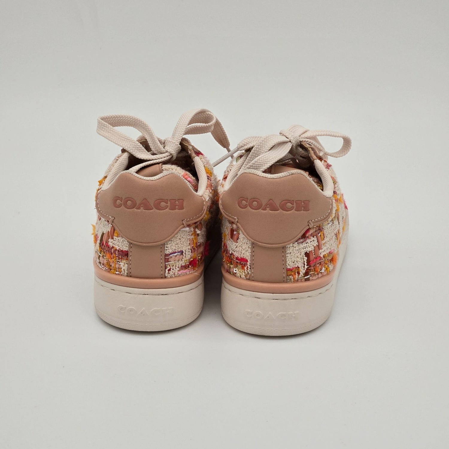 Coach Womens Lace-Up Sneakers Multicolor Tweed & Leather Casual Shoes