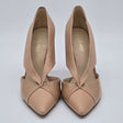 These pointed-toe pumps feature a sophisticated nude tone with a leather and man-made upper. The unique cutout design adds elegance, making them versatile for stylish ensembles.