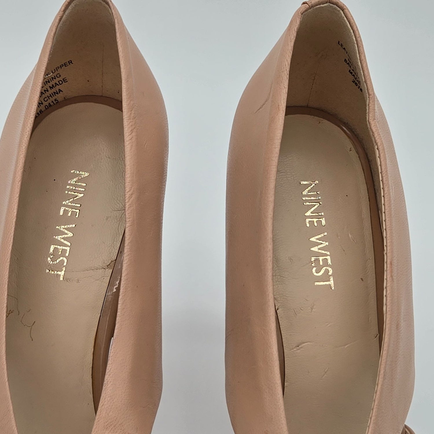 Nine West Tayme Nude Pointed Toe Pumps 6.5M Leather & Man-Made Upper Slip-On High Heels Elegant Design
