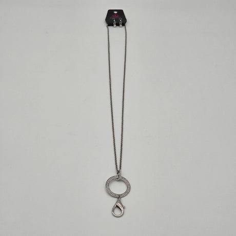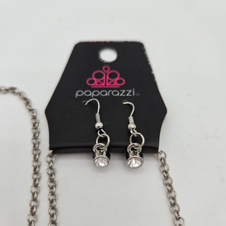 Straight to the Top Silver Rhinestone Circle Pendant Necklace & Matching Earrings Set By Paparazzi