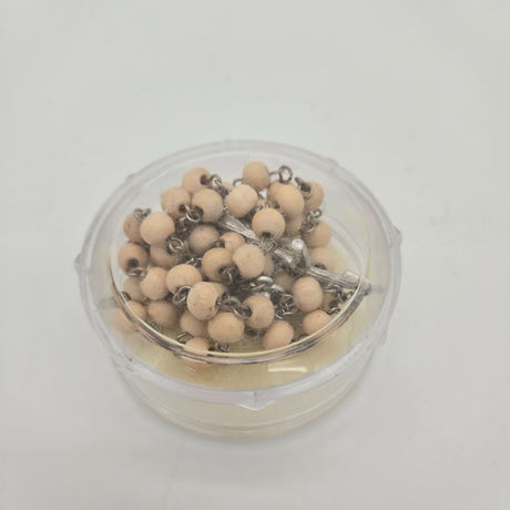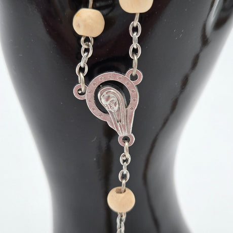 Wood Bead Rosary Necklace With Silver-Tone Crucifix & Virgin Mary Centerpiece