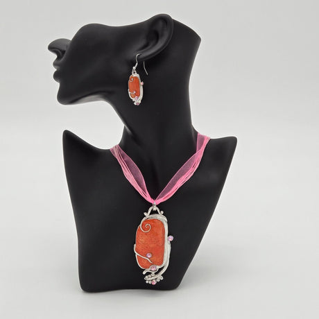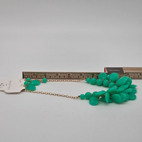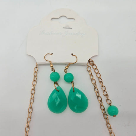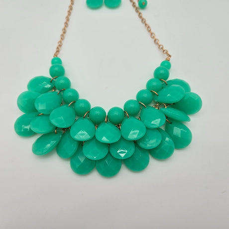 Green Teardrop Bib Necklace & Matching Earrings Set Gold Chain Fashion Jewelry Statement Piece
