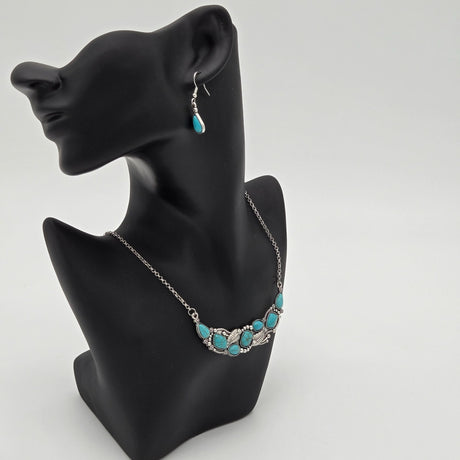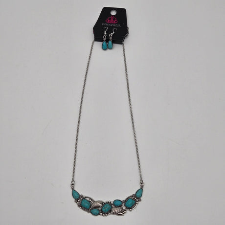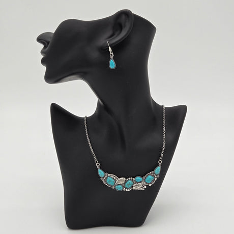 Turquoise Teardrop Necklace & Earring Set With Leaf Design By Paparazzi