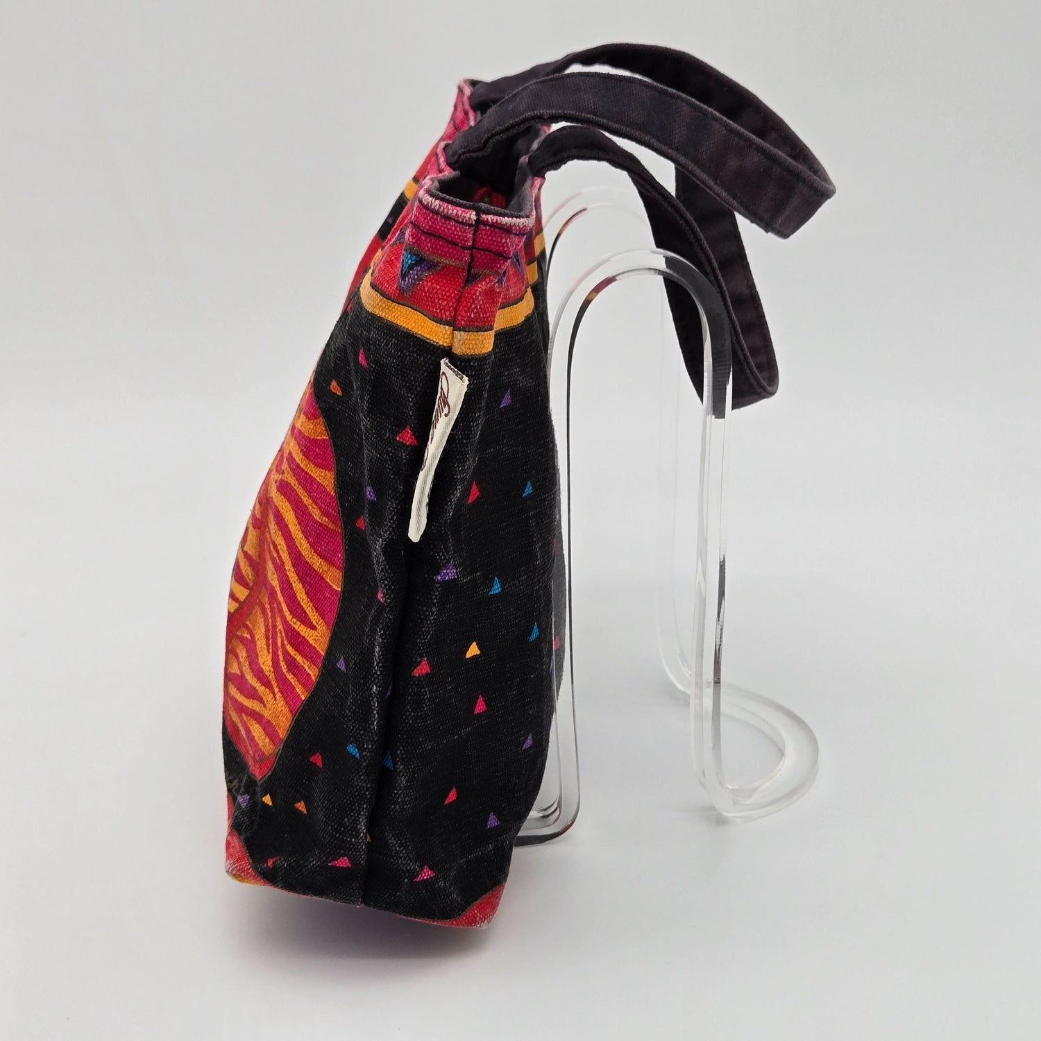 Vividly designed tote featuring Laurel Burch's whimsical cat artwork. Durable canvas material, ideal for daily use or as a statement accessory.