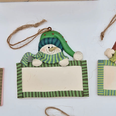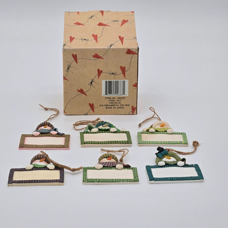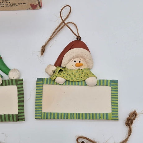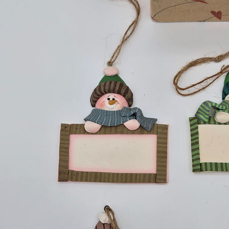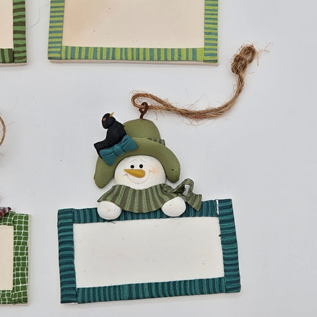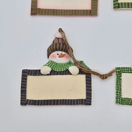 Set Of 6 Snowman Christmas Tree Ornaments With Blank Name Tags by Henton - Multicolor