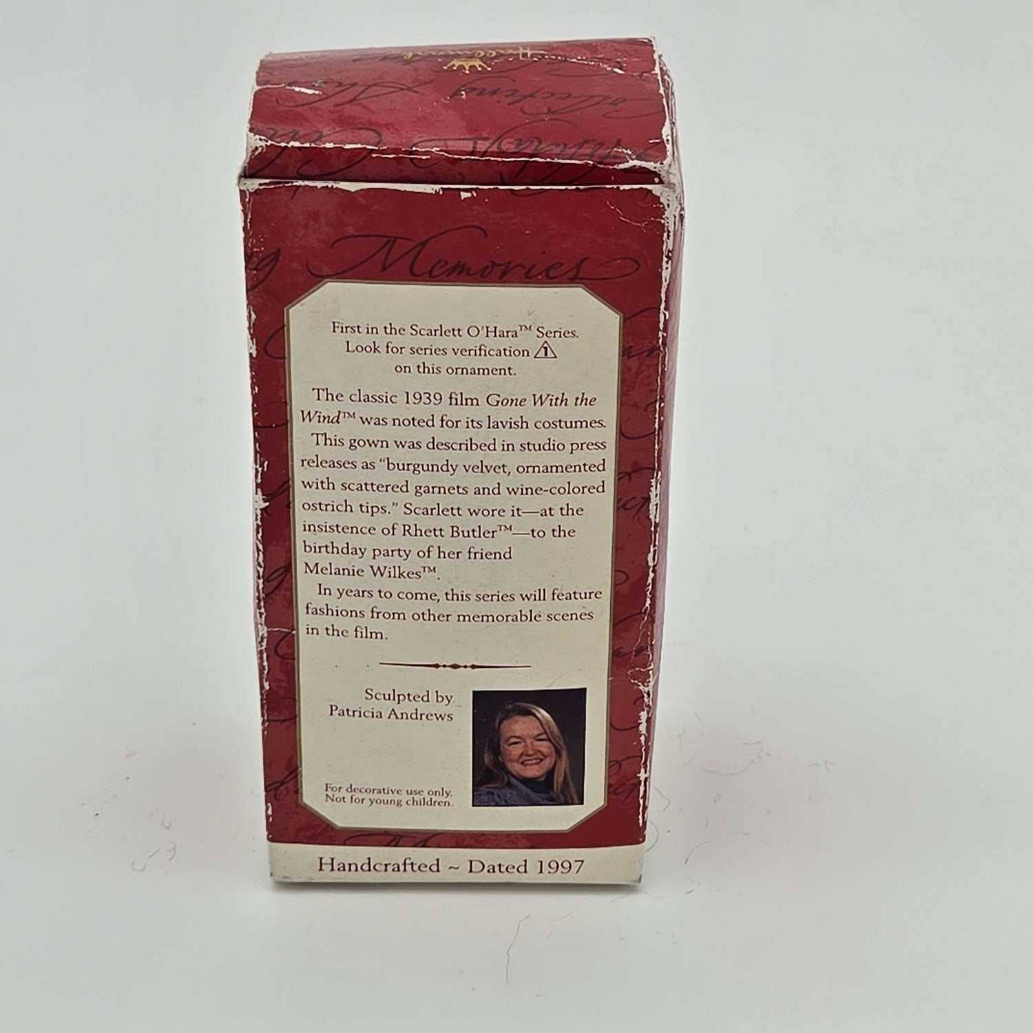 This Scarlett O'Hara ornament from Hallmark's 1995 Collector's Series features intricate details, a glamorous red dress, and a veil. Ideal for collectors.