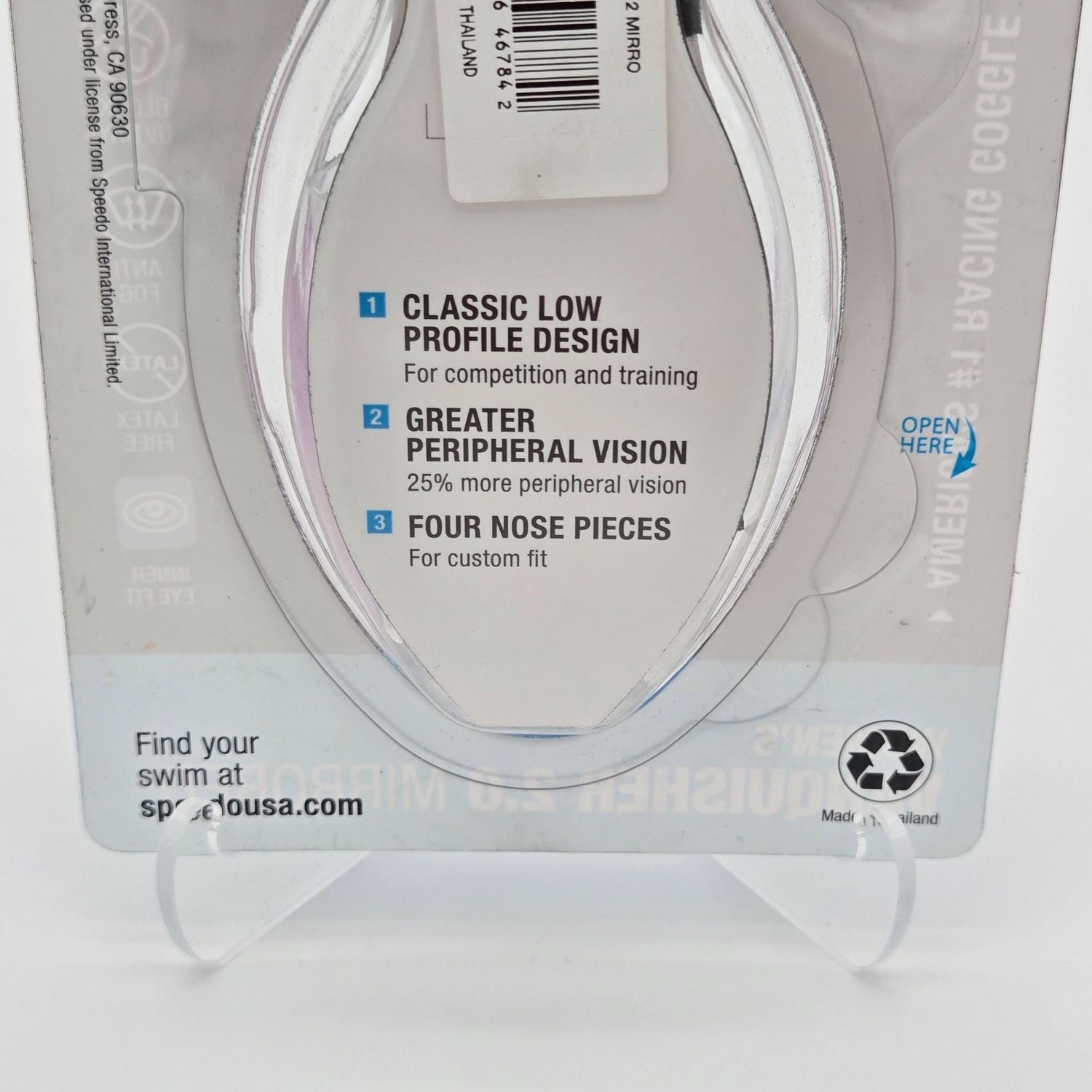 Designed for competitive swimmers, these goggles feature a low-profile design for reduced drag, mirrored lenses for glare reduction, and UV protection.