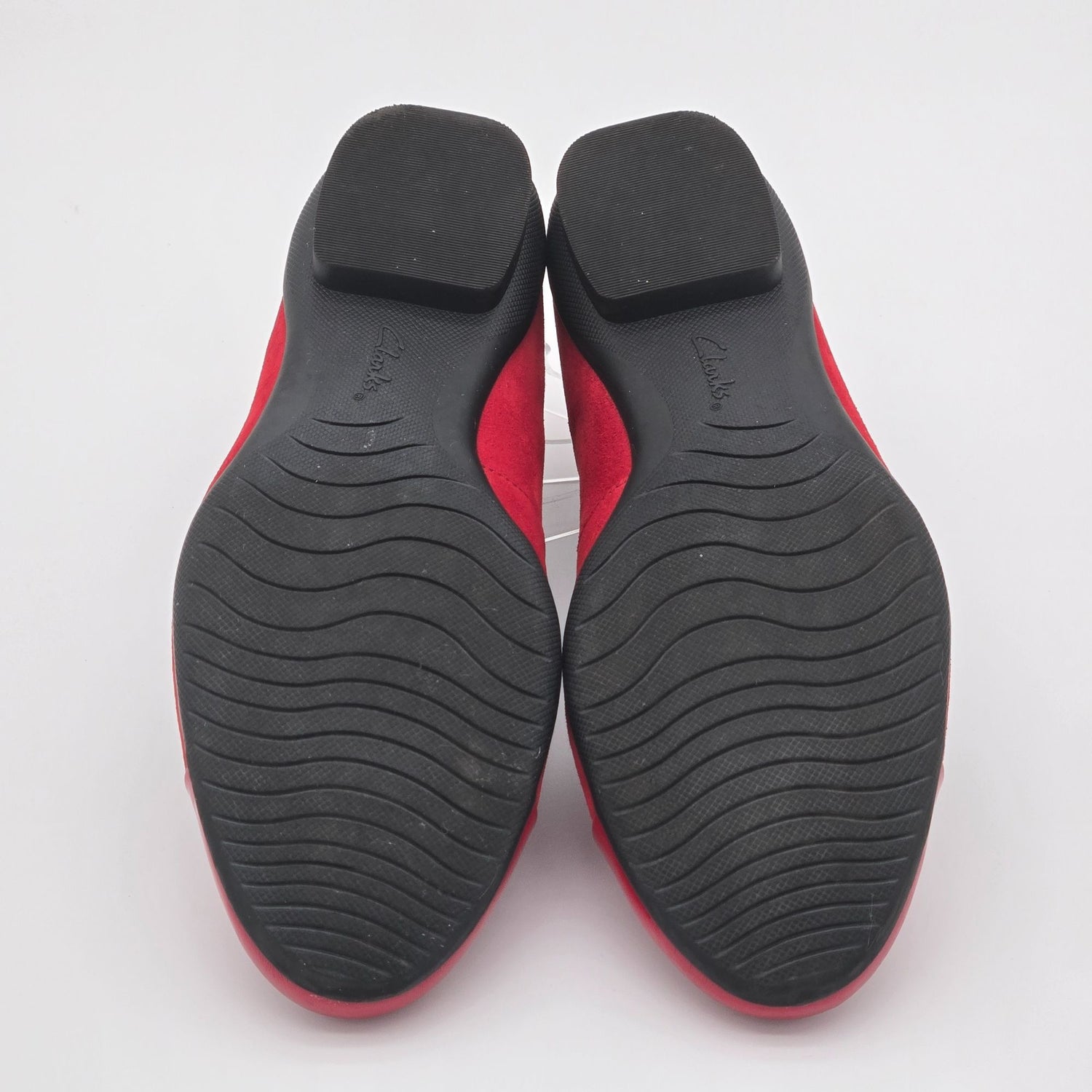 Clarks Womens Sara Orchid Red Ballet Flats Ultimate Comfort Collection Size 9.5 Suede & Patent Toe