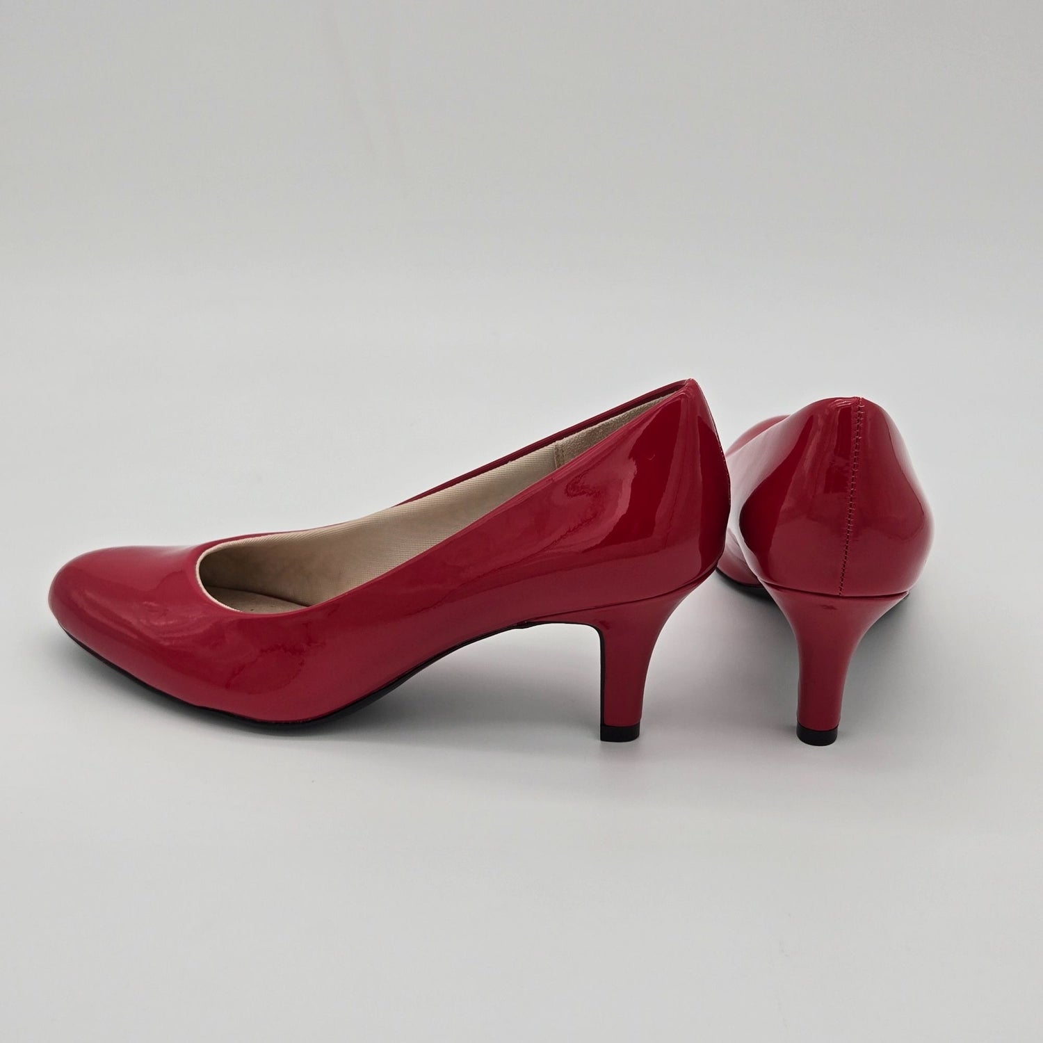 Classic and versatile red patent leather heels designed for style and comfort. The 2.5-inch heel adds a touch of elegance to any outfit.